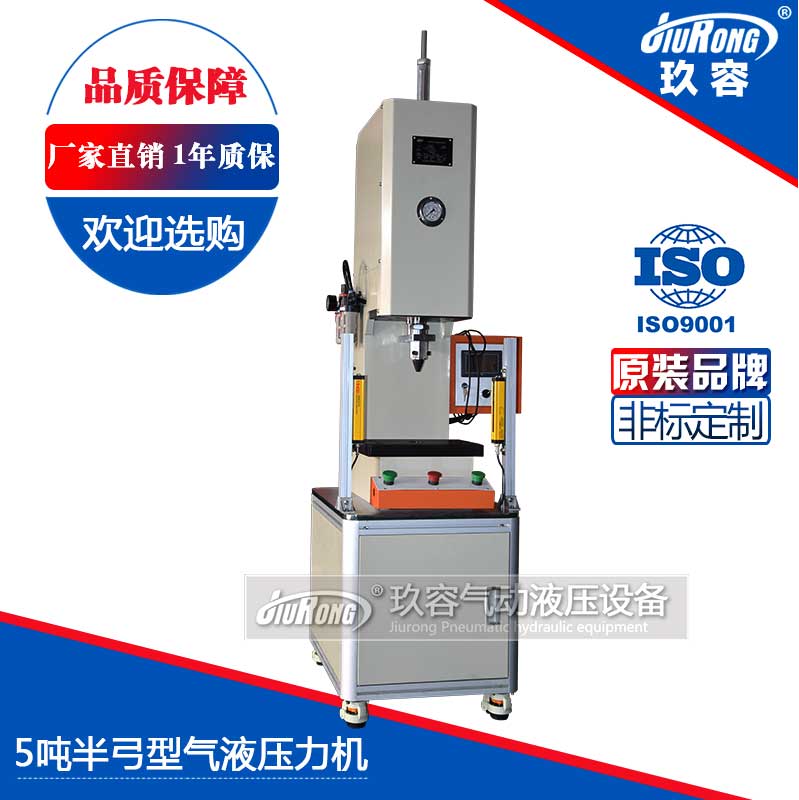 1、外形尺寸約為620*650*2010; 2、裝模尺寸:工作台尺寸350*240*35,開模高度250,喉深123; 3、裝模方式:上模連接在上模模頭的25內孔處,下模使用螺栓或T型螺母連接到在工作台上的T型槽上; 4、增壓缸出力參數: 增壓缸型號為JRB-80-100-10L-5T-10B,總行程100mm(含增壓行程10mm/可調增壓行程10mm); 當氣源壓力為0.6mpa時,理論預壓出力為300kg,理論增壓出力為6000kg,理論回程拉力為240kg,所有氣口在左側麵,均為ZG3/8"; 5、控製方式:正前麵底部附帶一操作按鈕盒,其中左右側各附一個雙手啟動按鈕,中間為急停按鈕; 6、電控部分:配我司標準型PLC電控箱; 7、安全防護:使用了英邦NA10-28SE安全光柵組件,最小檢測物體高度15mm,保護高度270mm。 注:以上數據均可非標定製。 | ![]() |